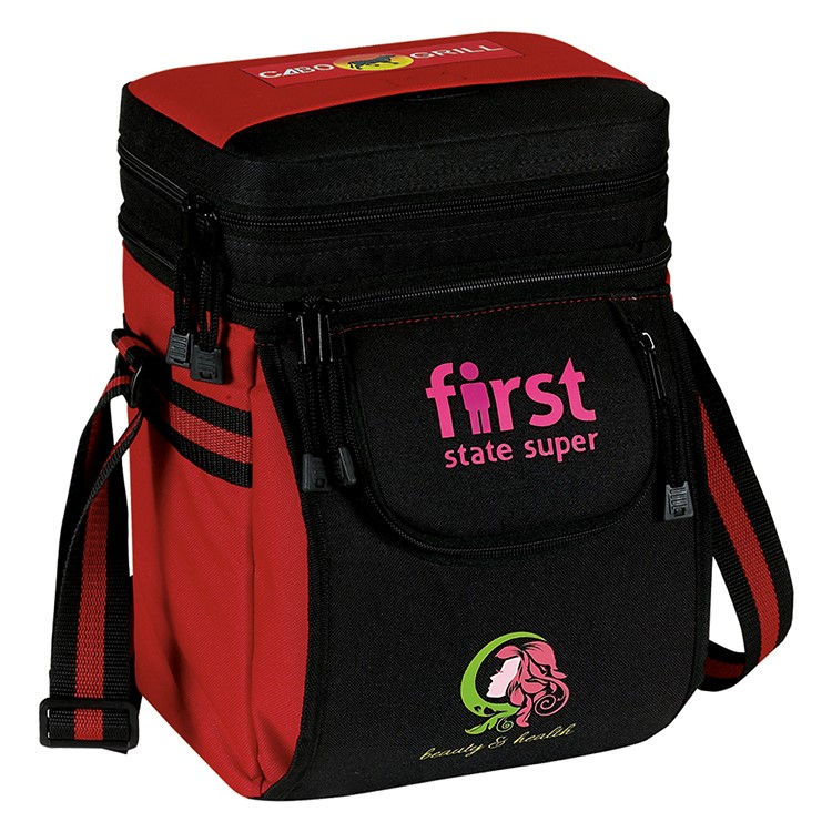- Dual zippered main compartment with fully insulated heat sealed lining